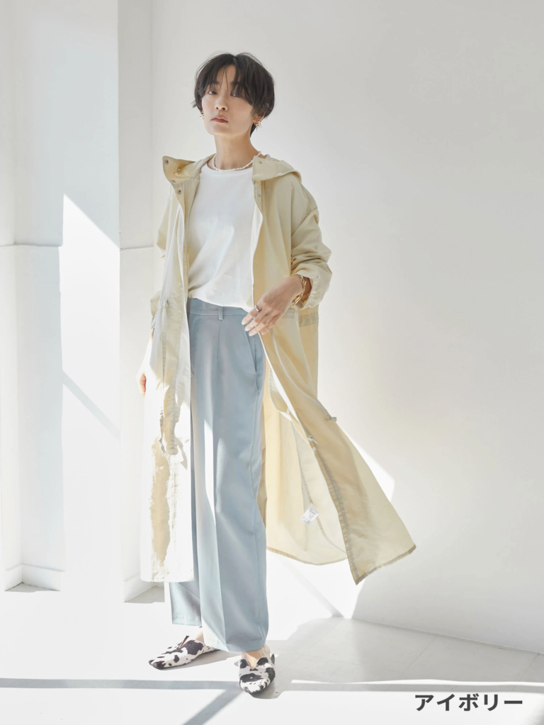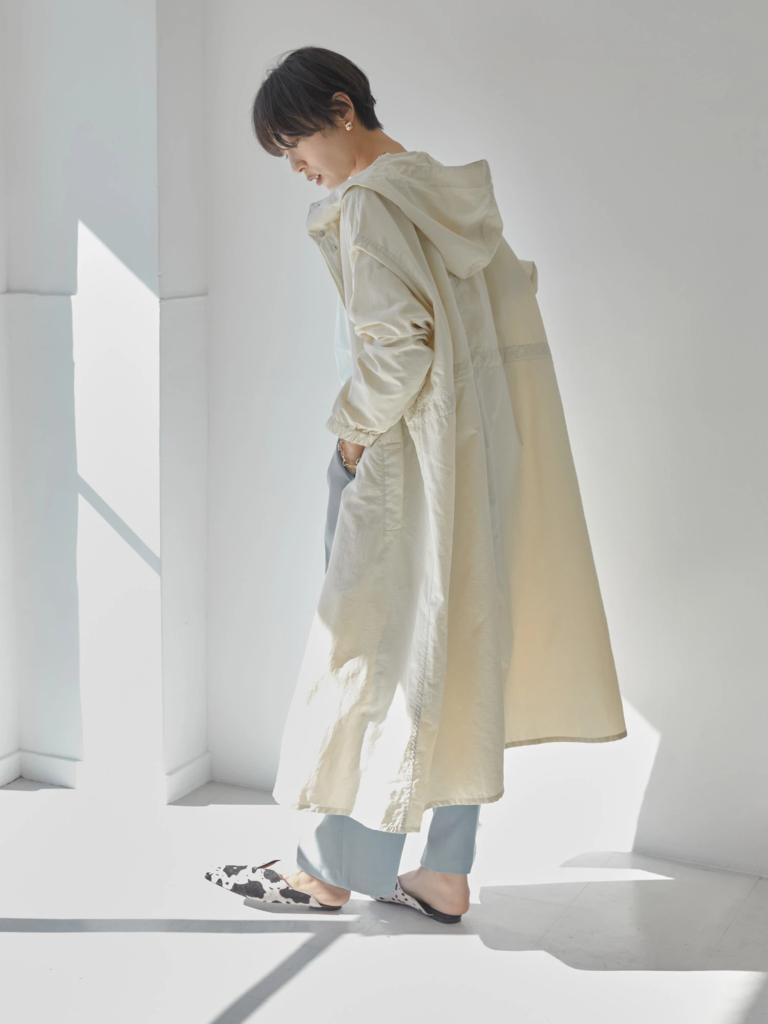 ふんわりと軽いナイロン素材で仕立てたコートです。