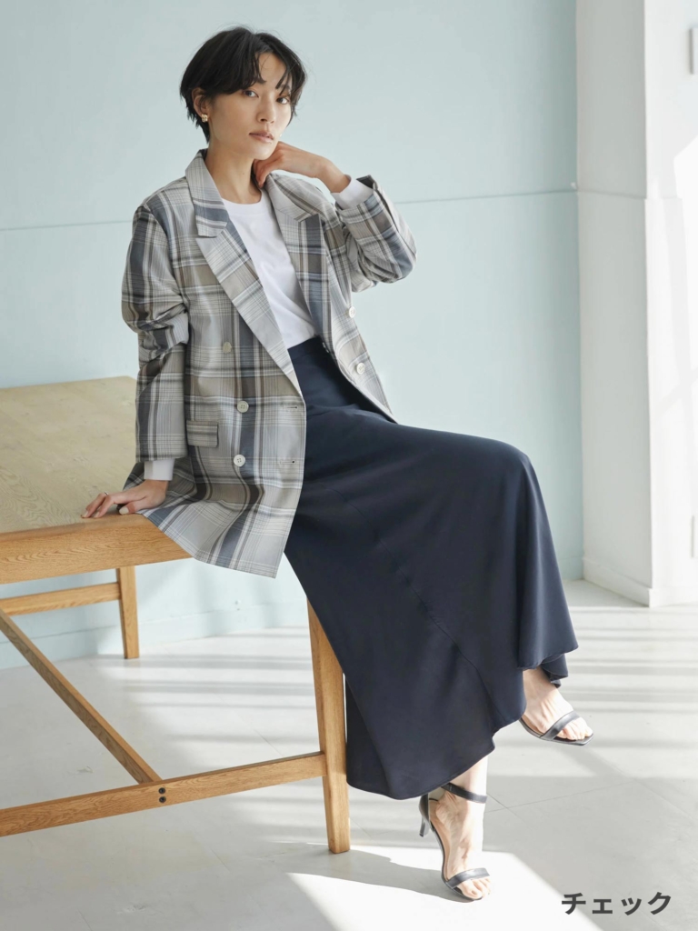 チェック柄とWボタンがマニッシュな雰囲気を演出してくれます。
