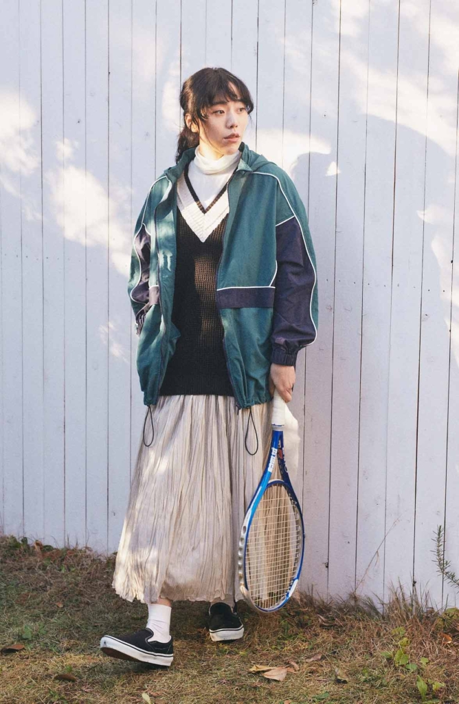 今年らしいスポーツMIXスタイルに活躍するアウター。
