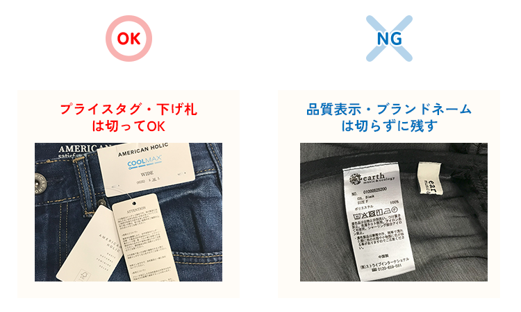 届く洋服の全てにタグがついています。