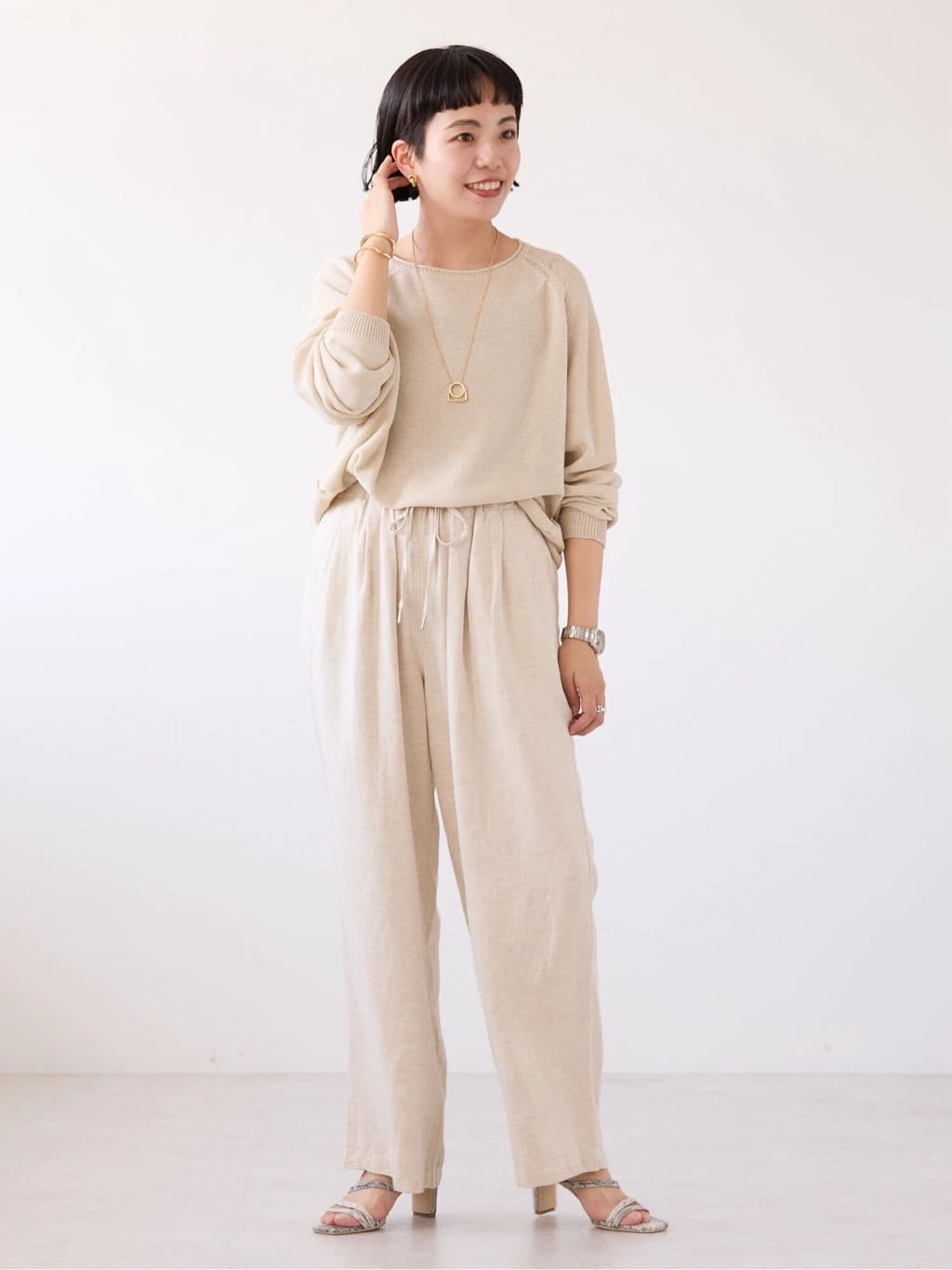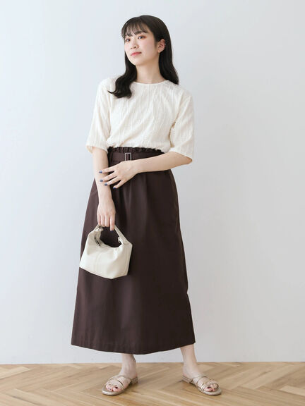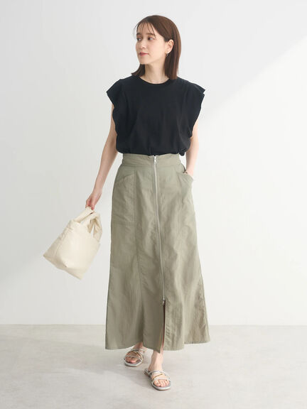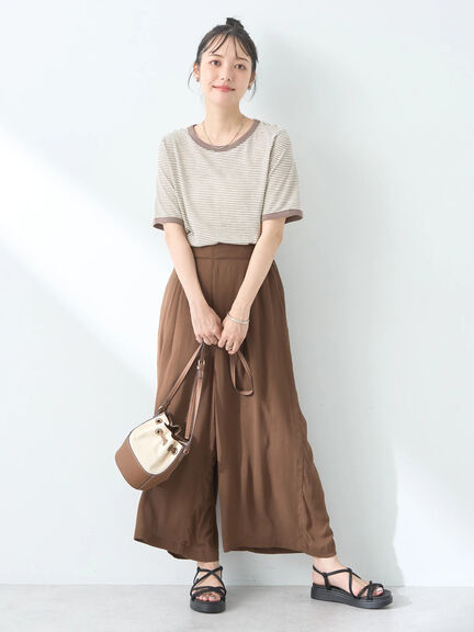 肌なじみの良いアースカラーは、上下で取り入れると落ち着いたこなれ感を演出できます。