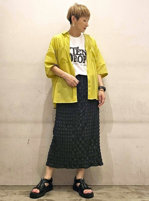シーンに合わせて、トップスイン・アウトのどちらでもサマ見えする一枚◎
