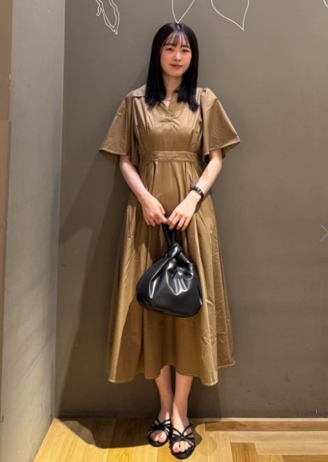 フレンチスリーブと腰回りが隠れる丈感で、体型カバー効果も◎