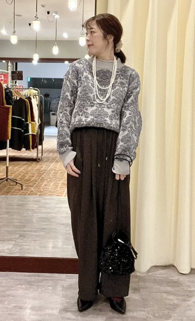 クラシカルなジャガード柄が目を惹く、ニットアイテム。