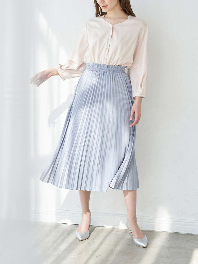 ギャザーブラウスとフレアスカートで軽やかな印象に!