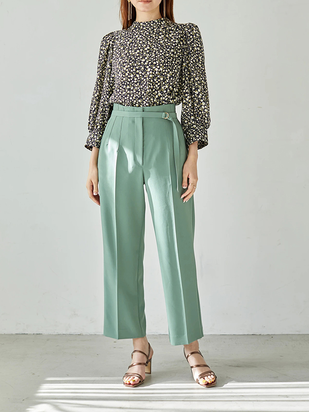 花柄ブラウス×パンツスタイルで大人フェミニンに