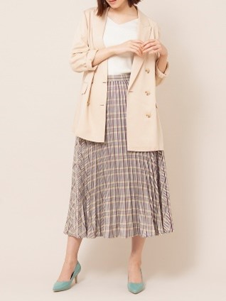 フレアなシルエットと落ち感が美しいロングスカートに、コンパクトなリブニットを合わせて大人の女性らしい洗練されたシルエットに。ほんのりと光沢感のあるスカートは、くすみ色をチョイスしてトレンド感を意識。