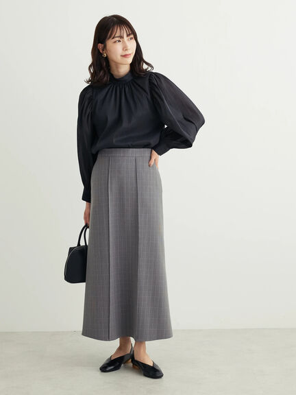 【袖プリーツ衿付きブラウス】