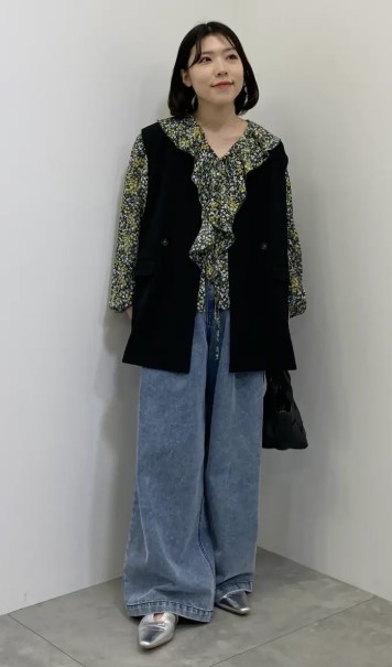 大きめのラッフルが印象的で、シンプルな装いに取り入れるだけで華やかさを演出。