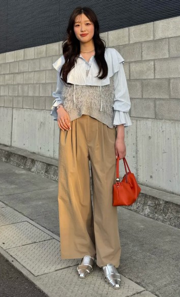 スリムなボトムスを合わせて、トップスとメリハリをつけたスタイリングもおすすめ◎