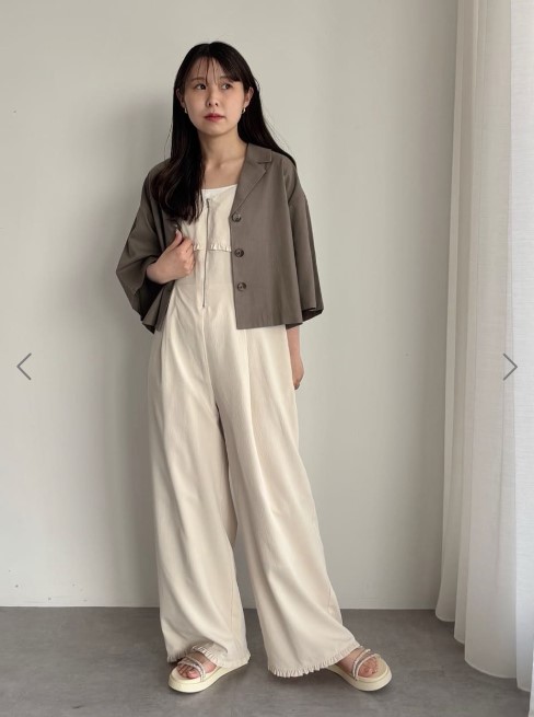 シンプルなインナーに合わせるだけで、トレンドライクなスタイリングに。