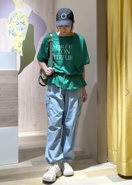 フェミニンなアイテムと合わせて、カジュアルダウンするスタイリングもおすすめ◎