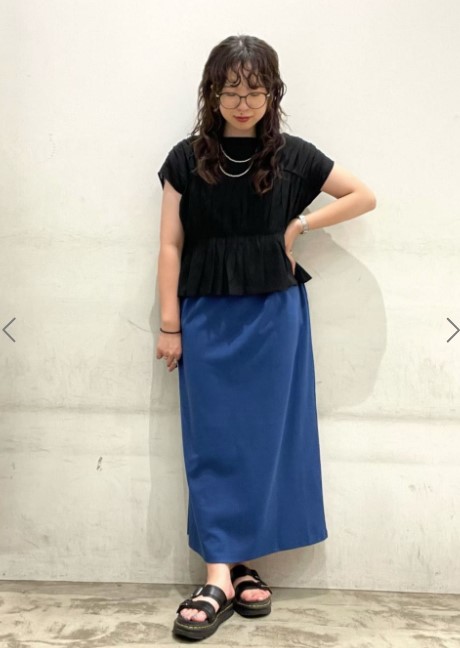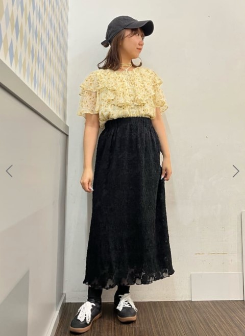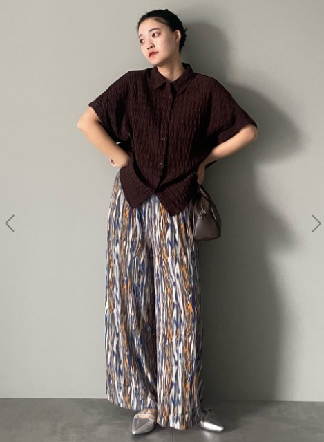 凹凸感あるシャーリング素材が、スタイリングのアクセントに◎