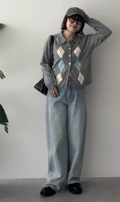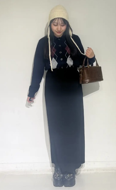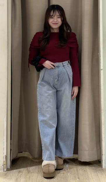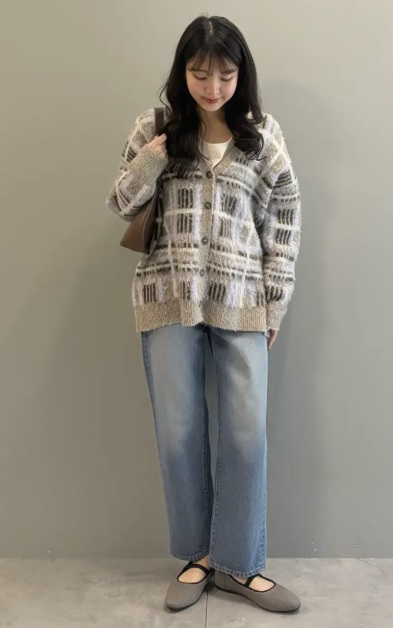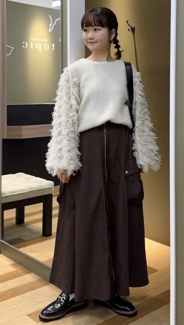 立体ニュアンス柄がアクセントになり、シンプルなボトムスでもコーデが完成♪