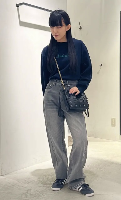 デニムを合わせて、あえてカジュアルダウンする着こなしもおすすめ◎