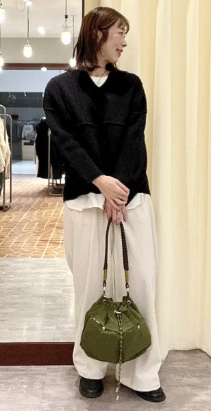 ゆったりとしたワイドなボトムを合わせた、ルーズな着こなしもおすすめ◎