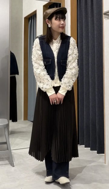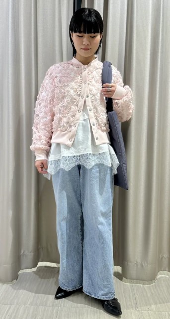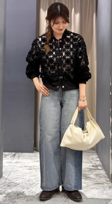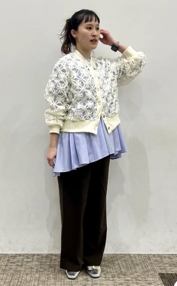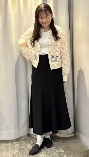 立体感のあるレース素材が印象的で、装いに自然な華やかさをプラス◎